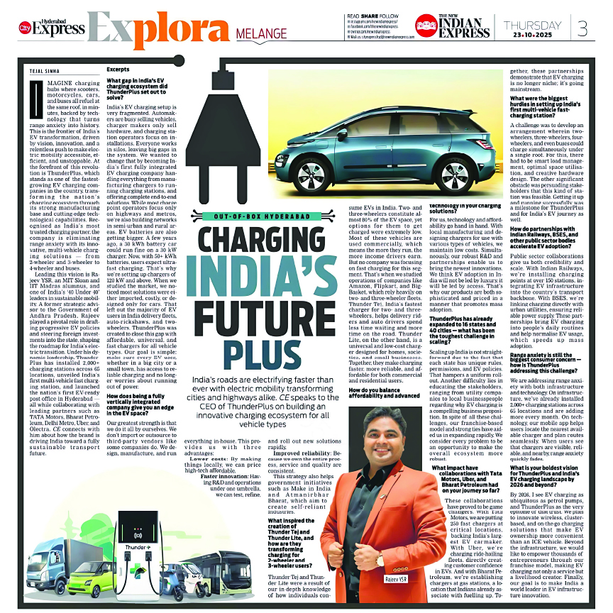 India’s electric vehicle (EV) landscape is evolving rapidly, with cities and highways transforming due to a surge in EV adoption. ThunderPlus, a pioneering EV charging solution provider, is at the forefront of this energy revolution, building a robust and intelligent charging ecosystem for all vehicle types.