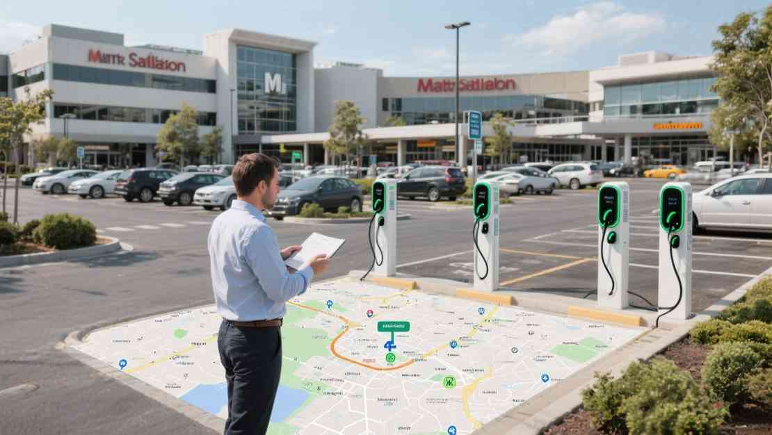 Using the 3 × 3 km policy grid as a map, shortlist locations with high vehicle density and limited existing coverage. Shopping malls, corporate campuses, and metro stations top the list because dwell times are long enough for meaningful charge sessions.