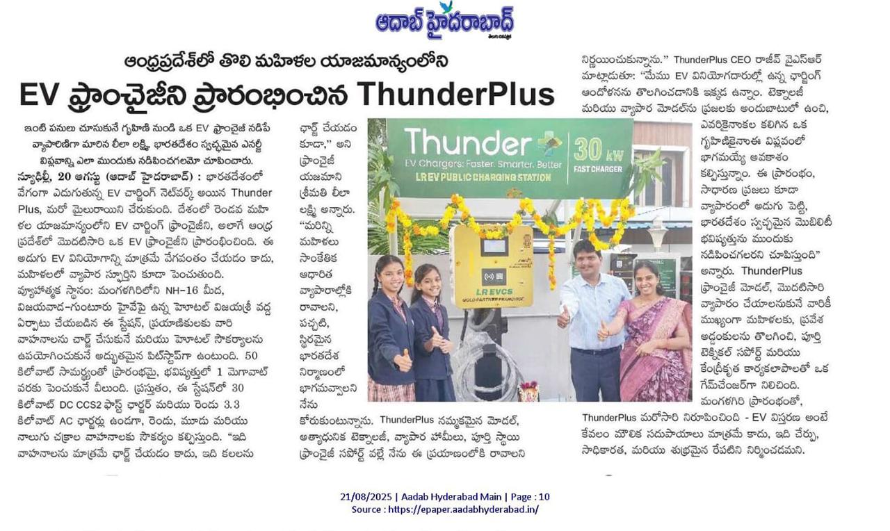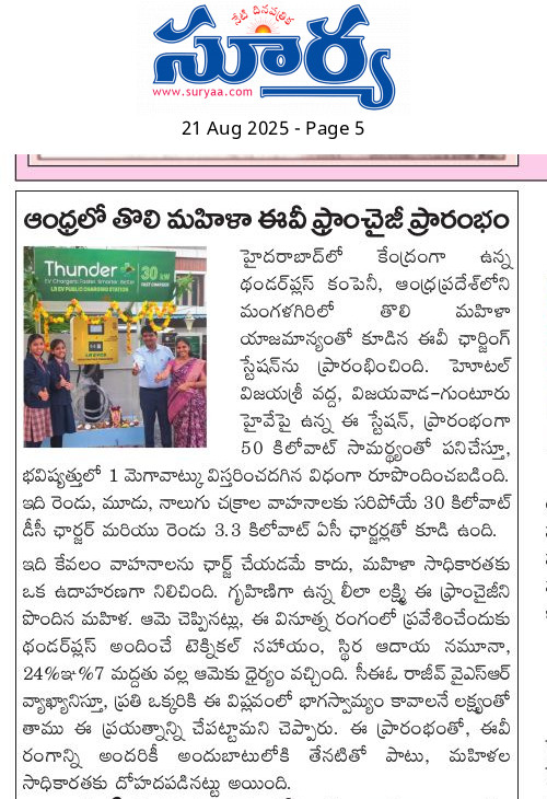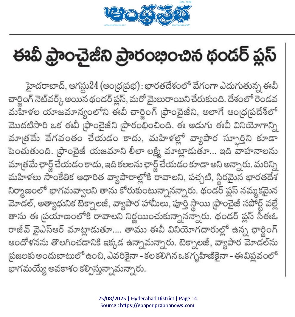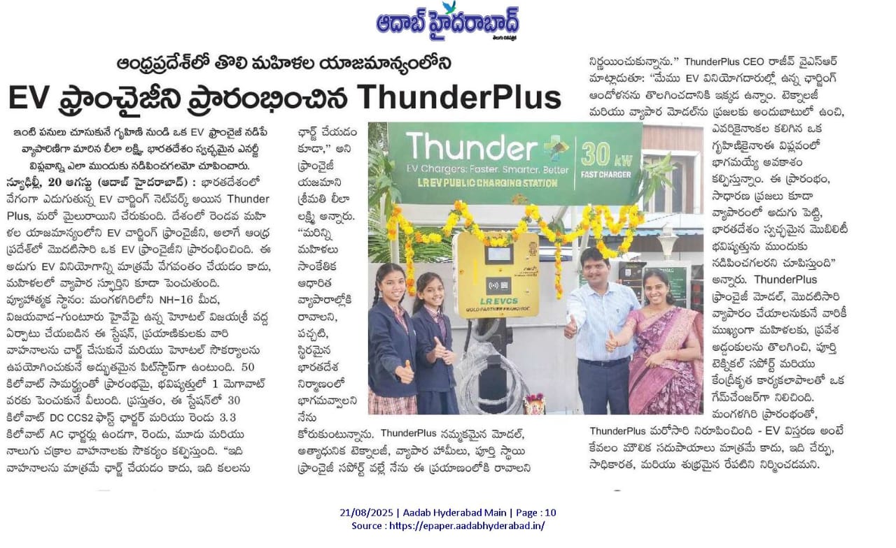 Every ThunderPlus franchise is more than a business it’s a story of ambition, trust, and growth. Each partner comes with a unique dream, and together we turn it into a reality. From pioneering women entrepreneurs breaking barriers, to young visionaries chasing innovation, these journeys show what’s possible when passion meets the right support. Backed by advanced technology, reliable operations, and a trusted brand, our franchisees are not just building businesses they are shaping India’s clean mobility future. And with every success story, the ThunderPlus network grows stronger, empowering more entrepreneurs across the country.