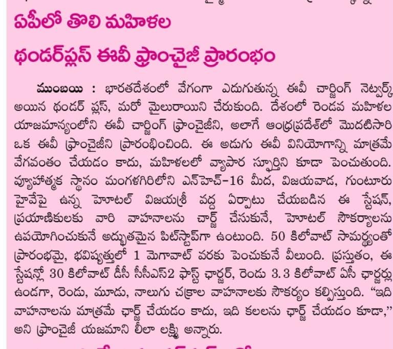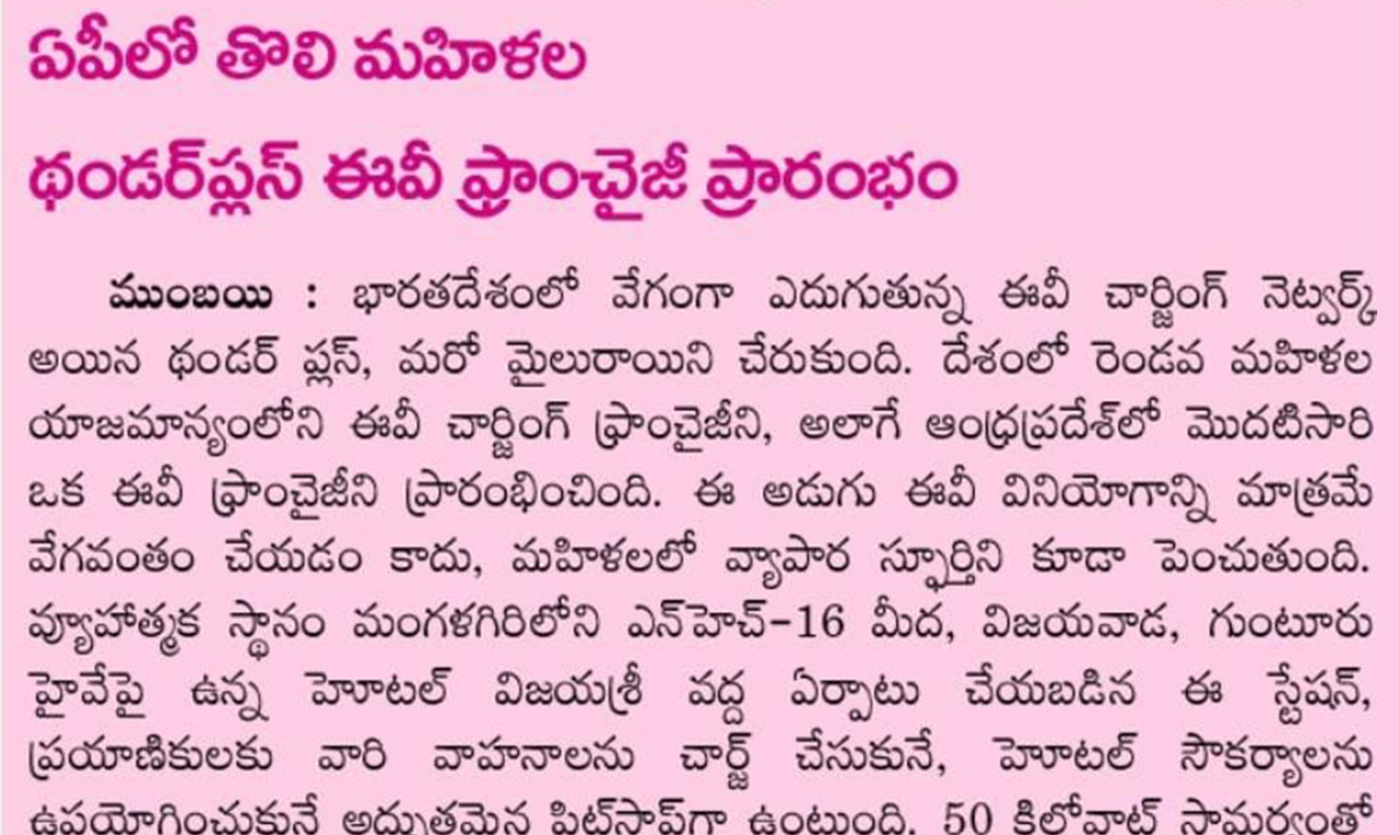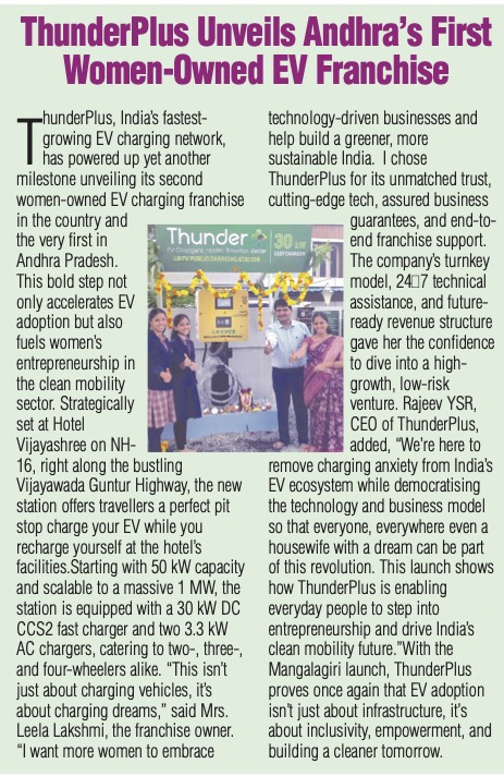 ThunderPlus has marked a significant milestone by unveiling Andhra Pradesh’s first-ever women-owned electric vehicle charging station, reflecting the rising convergence of sustainable infrastructure and gender empowerment in India’s mobility sector. This pioneering initiative underscores both the potential of EV infrastructure and the importance of women-led ventures in clean energy transformation.